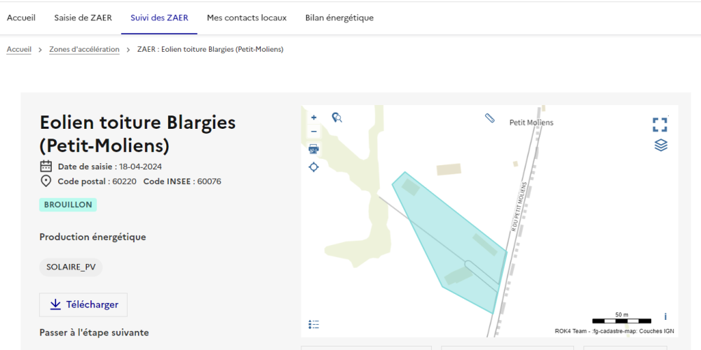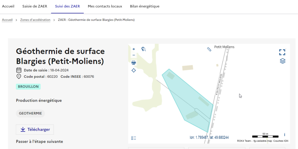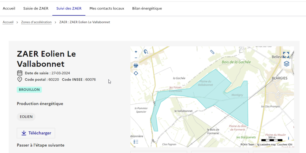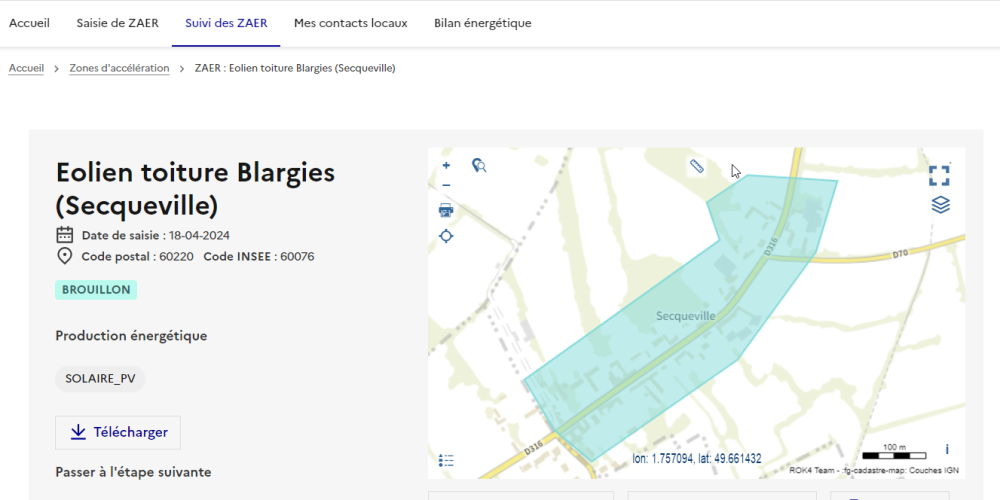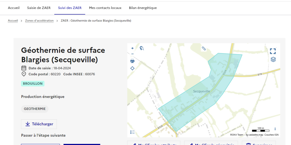Pour la détermination de ces zones, le Ministère de la Transition Énergétique a mis à disposition une plateforme cartographique national des EnR, élaboré par le Cerema et l’IGN, permettant de visualiser les potentiels EnR : https://macarte.ign.fr/carte/W3Cf8x/Portail-Cartographique-EnR.